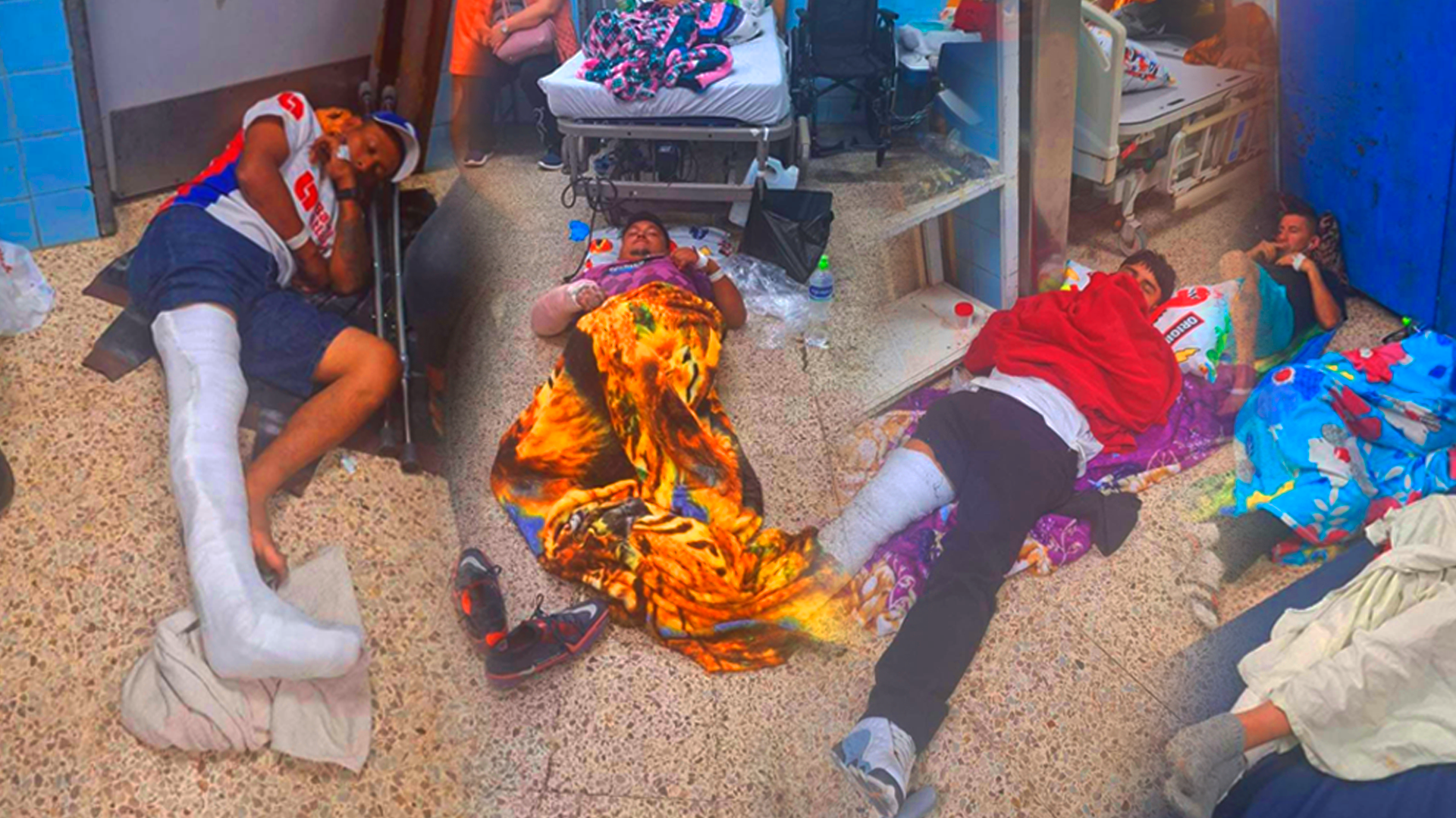 En las imágenes difundidas recientemente, se observa a personas con fracturas y otras lesiones graves durmiendo en condiciones indignas. Entre ellas, un hombre con la pierna enyesada yace en el suelo apoyado en una silla de ruedas, mientras otros pacientes improvisan colchones con cobijas en rincones del hospital.