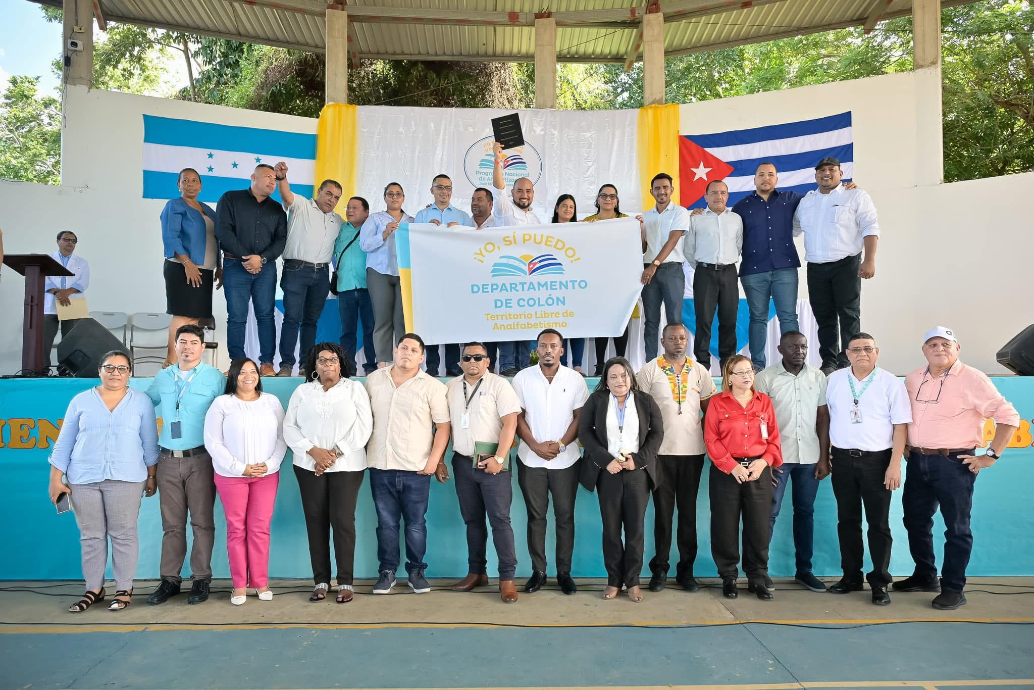 Trujillo,Colón – Con la presencia del secretario de educación  Daniel Sponda se declaró al departamento de Colon  Libre de analfabetismo logrando bajar el indece del 16% al 2.5%  esto se logró con la metodología del “yo si puedo “y el apoyo de maestro Cubanos que llevaron su conocimiento y técnicas de aprendizaje a los 10 municipios de Colón.