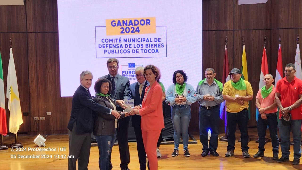 En su cuarta edición, el jurado compuesto por los embajadores en Honduras de la Unión Europea, España, Alemania y Francia, tomaron la decisión de otorgar este año el premio al Comité Municipal de Defensa de los Bienes Comunes y Públicos de Tocoa.