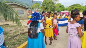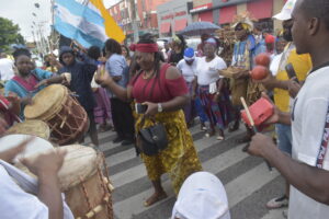 Luego con una caminata por la avenida San Isidro, al ritmo de los tambores, maracas y el caracol, avanzaron hacia la plaza municipal. Durante el recorrido, los cantos en su lengua y el ritmo punta, invadieron esta concurrida vía.
