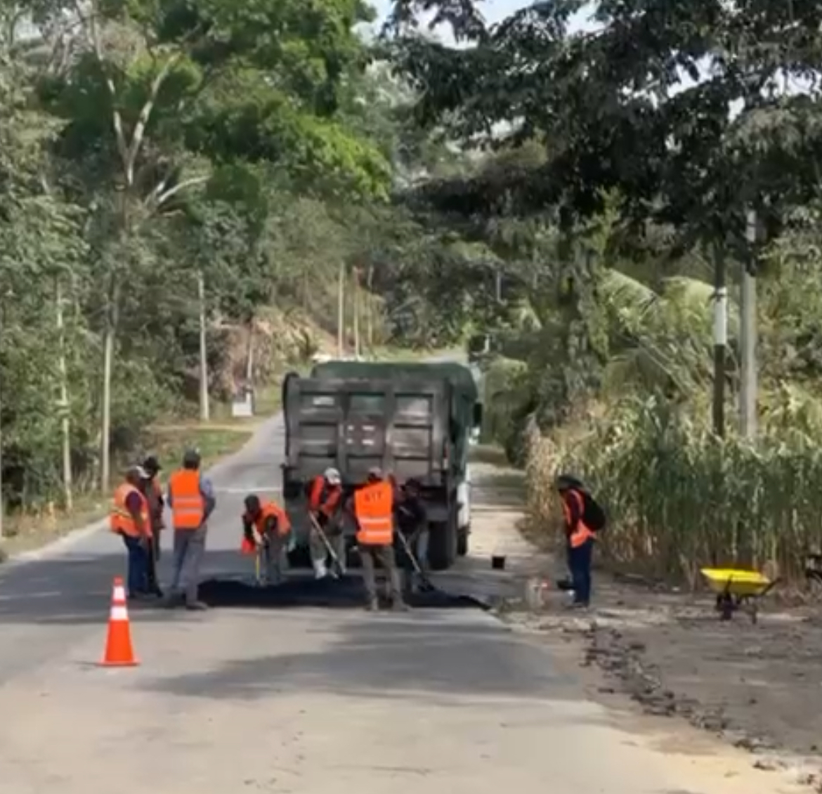 Jutiapa,Atlántida.- De forma inesperada la compañía que realiza los trabajos de bacheo se retiró de la carretera y dejó de laborar por lo que hay partes que no terminaron de tapar los agujeros .