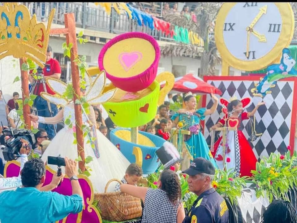 Una carroza inspirada en la obra literaria “Alicia en el país de las Maravillas”, la que fue de las más aplaudidas y que al final obtuvo el primer lugar.