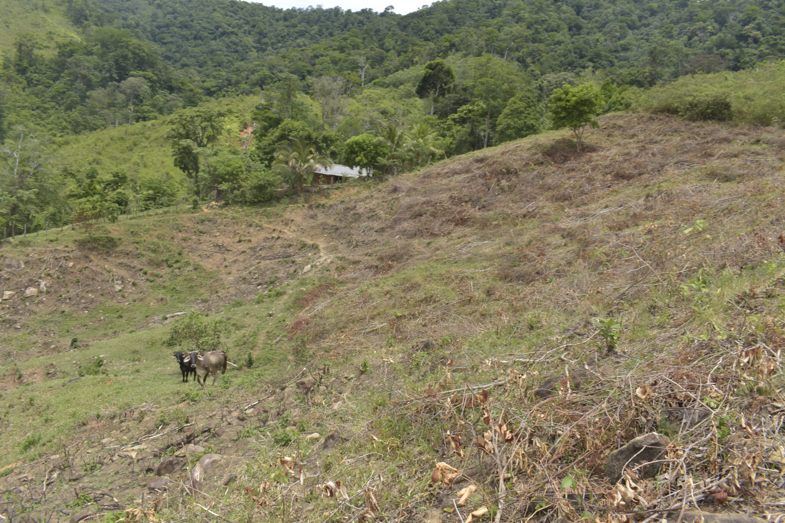 Potreros y cultivos son los que se imponen donde antes fueron frondosos bosques, aquí los primeros pobladores de Quinito, fueron defensores del bosque, heredaron está montaña a sus hijos, las que hoy están siendo cortadas por invasores de oficio.