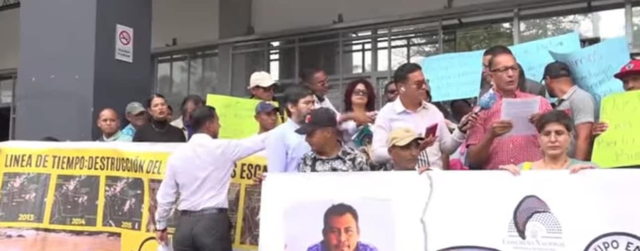 Tegucigalpa- Representantes del pueblo de Tocoa, Colón, realizan este miércoles un plantón frente las instalaciones del Ministerio Público en la capital, esto exigiendo justicia en la muerte del ambientalista Juan López.