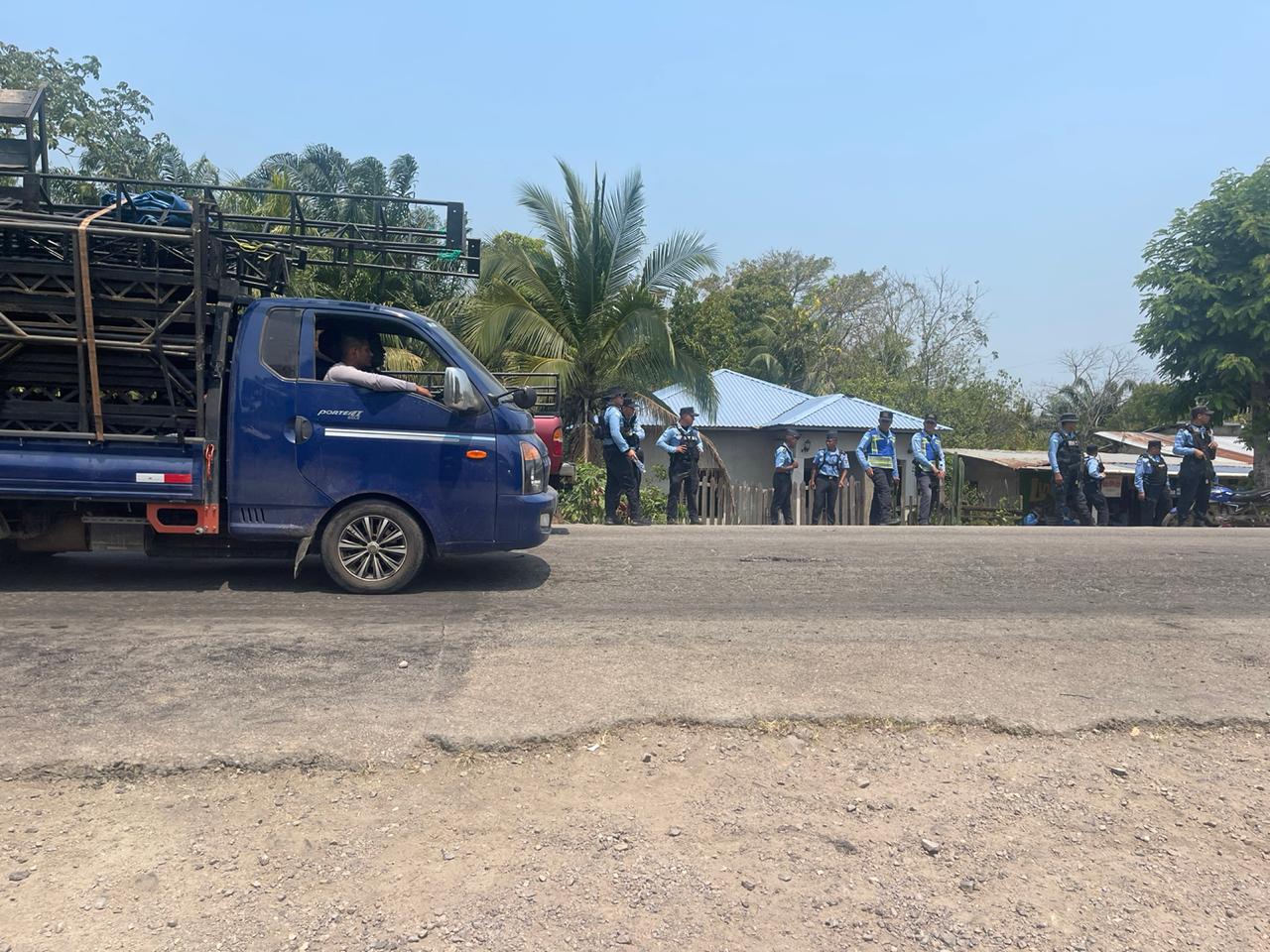 A la protesta llegó la policía Nacional que también ayudó a que la ENEE llegara a resolver el problema.