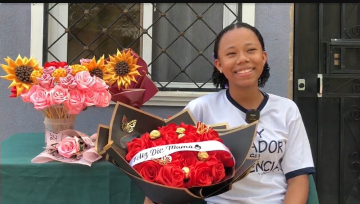 Tocoa,Colón- Con apenas trece años ,Britany Mejía Reyes es una emprendedora en la fabricación de arreglo de flores conocido como “flores eternas”, su mayor ejemplo es su Madre quien también es emprendedora.