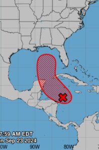 Esta mañana de lunes 23 de sept. Se forma el potencial ciclón tropical 9, y se dirige hacia el Golfo de México por el canal de Yucatan.