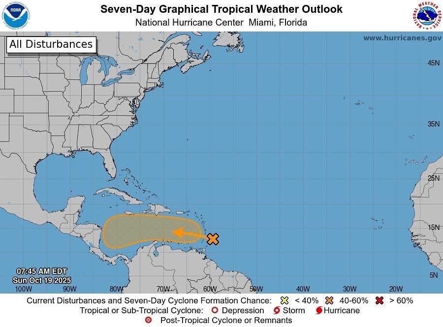 Honduras – El Centro Nacional de Huracanes de Estados Unidos (NHC) muestra un disturbio, que ahora es aún una *Onda Tropical* con potencial de *60% de convertirse en ciclón tropical a mediados o finales de la próxima semana*.