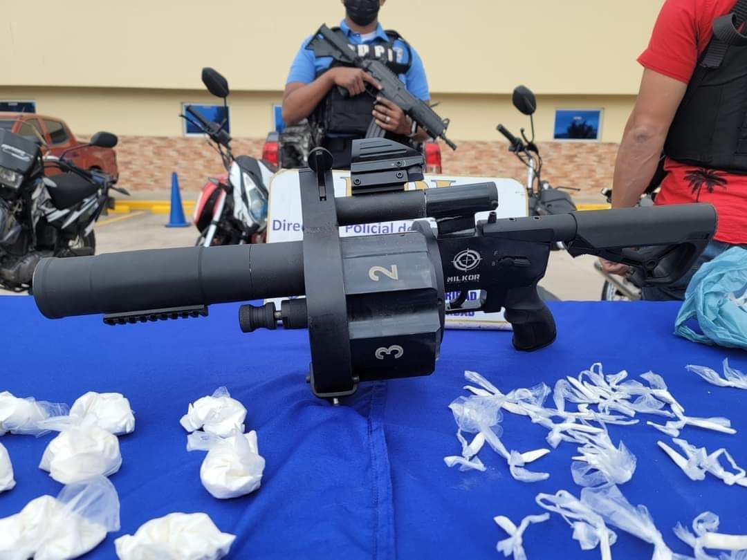 El lanzagranadas, valorado en más de medio millón de lempiras, es un arma de uso militar y su posesión por parte de esta pandilla representaba un grave riesgo para la población hondureña. Además, se encontraron 03 chalecos antibalas, 103 bolsitas de cocaína, 26 bolsas de cocaína de una onza cada bolsa, y 04 motocicletas de diferentes marcas y modelos. Asimismo, se decomisaron varias piezas de vehículos y motocicletas.