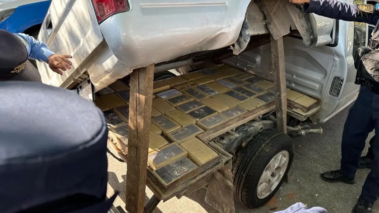 Durante la inspección del automotor, los agentes utilizaron equipos de escaneo que detectaron compartimentos falsos, conocidos como “caletas”, así como un doble fondo diseñado para ocultar estupefacientes. En el interior fueron encontrados 82 paquetes rectangulares de aproximadamente un kilogramo cada uno, los cuales, tras las pruebas de campo, dieron positivo para cocaína.