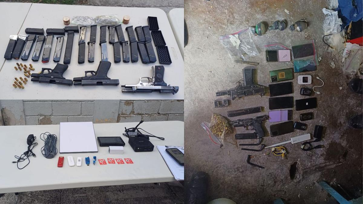 Durante la operación denominada «Fe y Esperanza», los agentes encontraron 12 armas de fuego calibre 9 milímetros, 36 cargadores, 582 proyectiles de ese mismo calibre y tres proyectiles calibre .22.