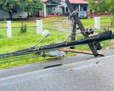 Olanchito, Yoro – Sin energía eléctrica están varias comunidades en este sector , varios postes del tendido eléctrico se quebraron por los fuertes vientos . Una lluvia de pocos minutos , con vientos fuertes provocaron la caída de unos ocho postes del