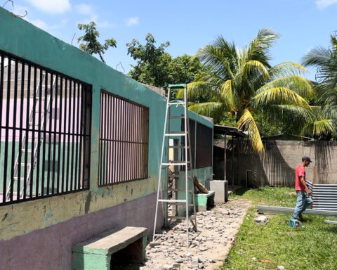 Saba,Colón – Inició la reconstrucción de la escuela Oscar Nájera de aldea Las Mercedes,se está cambiando el techo de dos aulas, también se levantará el nivel de las mismas. El proyecto es la de construcción del techo de dos aulas,sistema de energía