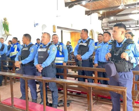 Olanchito,Yoro- Este día se llevó a cabo una celebración Eucaristica, en el templo parroquial San Jorge, en honor a la celebración de aniversario de fundación de La Policía Nacional de Honduras. Miembros de la policía Nacional llegaron hasta el templo de la
