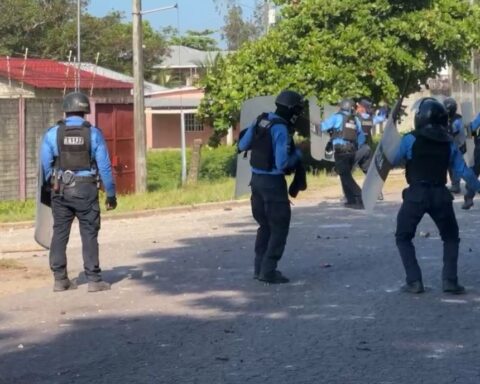 Trujillo,Colón-Pobladores que tenían una toma en la entrada de la Empresa Nacional Portuaria fueron desalojados de forma violenta,por la Policía Nacional que realizó disparos para quitar a los Ciudadanos . Los pobladores exigen el pago por más de un millón de lempiras
