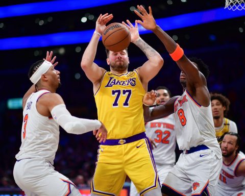 Con una actuación estelar de Austin Reaves, Los Angeles Lakers vencieron la noche del jueves a los Philadelphia 76ers por 119-115 en un duelo que Luka Doncic abandonó por lesión. A continuación las escenas principales de esta jornada de ocho partidos de