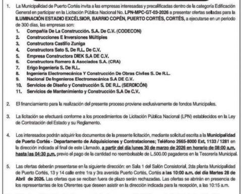 El nuevo alcalde de Puerto Cortés, Omar Giancarlo Rodríguez, ha puesto en marcha el proyecto de iluminación del Estadio Excelsior para beneficio de todas las ligas y particularmente el primer campeón nacional, Platense, que ha tenido que jugar fuera de la ciudad