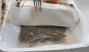 Se informó, que en una de las bandejas se encontró una bolsa plástica conteniendo supuesta marihuana, mismo hallazgo se hizo en la segunda bandeja en la cual también ocultaba una pastilla azul y un envoltorio de papel higiénico conteniendo una sustancia desconocida.