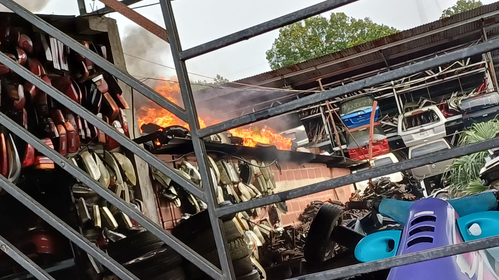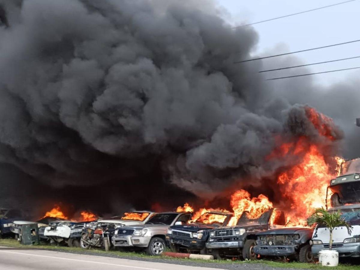 Imágenes difundidas por Noticieros Hoy Mismo de TSi mostraron cómo las intensas llamas consumían rápidamente las unidades almacenadas en el establecimiento, las cuales eran utilizadas como repuestos para otros vehículos.