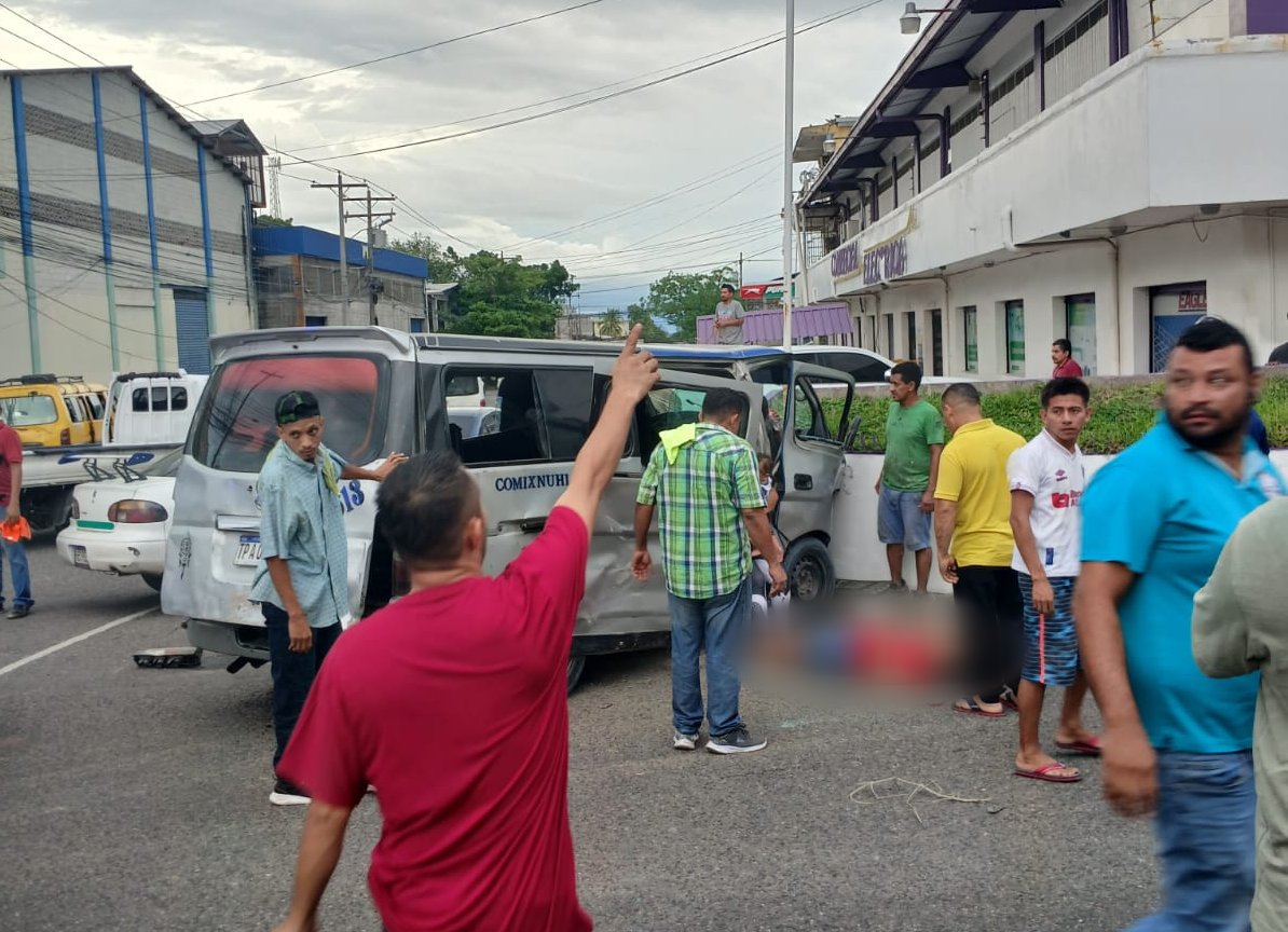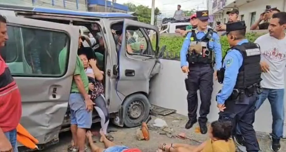 San Pedro Sula. — Al menos diez personas resultaron heridas este miércoles tras un accidente vial entre un bus tipo «rapidito» y un vehículo particular en el barrio Medina, en el norte de Honduras.