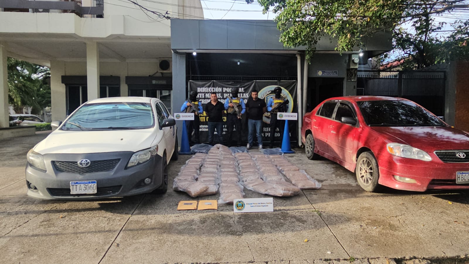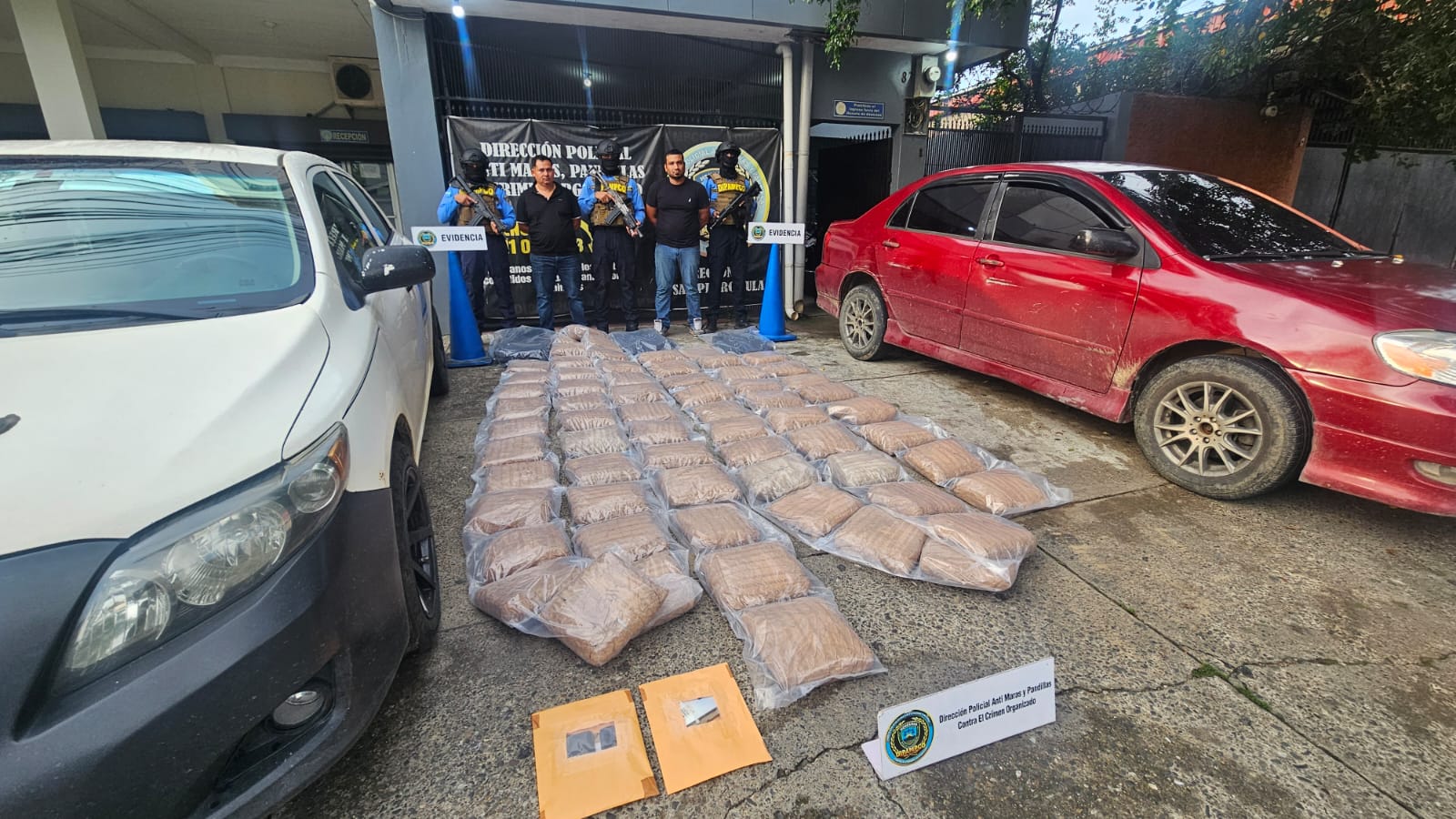 Durante la inspección de los vehículos decomisados, las autoridades hallaron 65 paquetes teypiados con masking tape color café, cada uno con aproximadamente 2 libras de hierba seca supuesta marihuana. Además, se incautaron tres teléfonos celulares y dos vehículos tipo turismo, incluyendo un taxi.