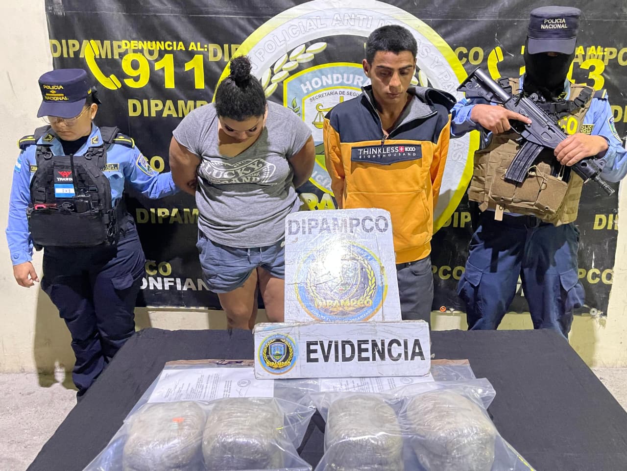 Los capturados fueron identificados como Francisco Antonio Flores Ilovares, de 23 años, conocido con el alias de “Little Asesino”, y Catherine Marcela Rivera Gallo, de 18 años, alias “La Madrina”, quienes, de acuerdo con las autoridades, tendrían un rol clave en la logística de distribución de estupefacientes en este sector de Comayagüela.