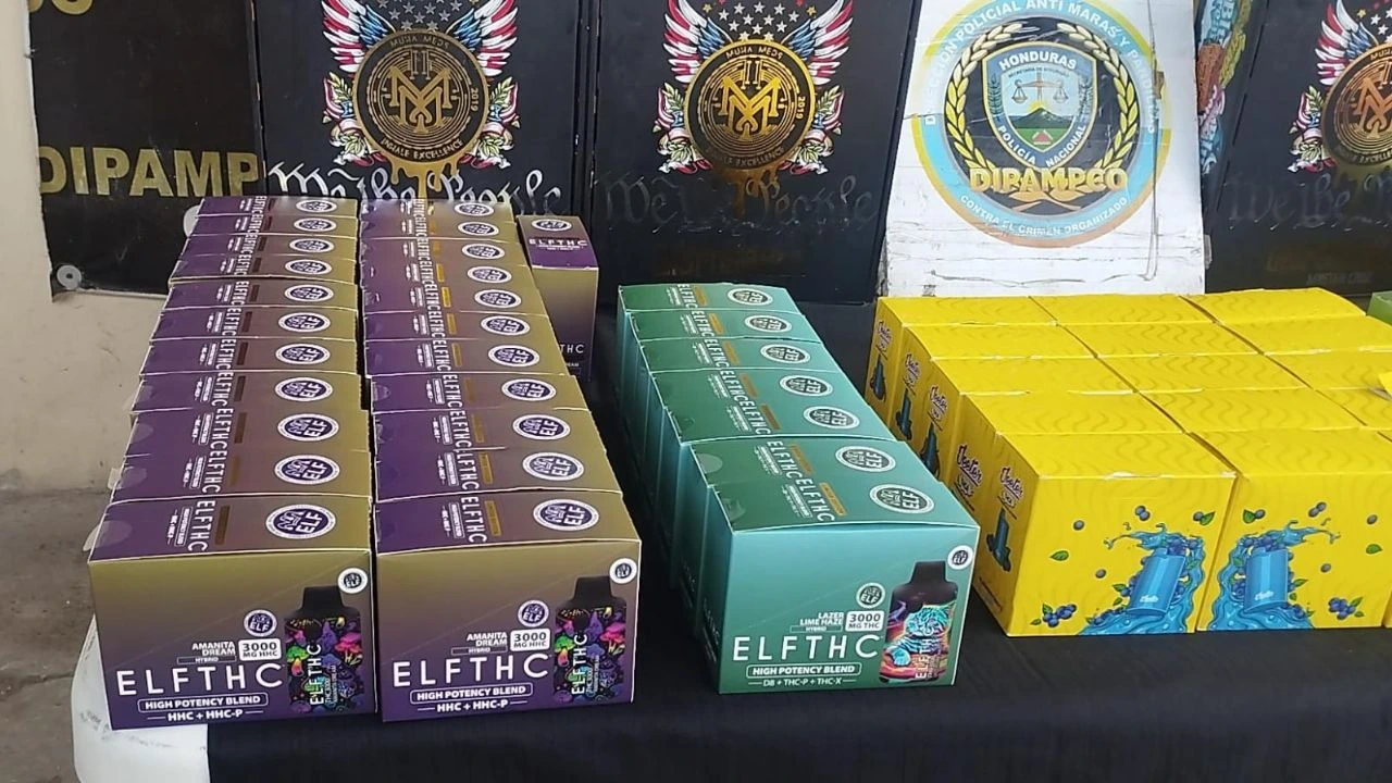 Durante el registro, los agentes incautaron cigarrillos electrónicos, cartuchos y líquidos vaporizables elaborados con Cannabis sativa (marihuana) y otras sustancias psicoactivas modificadas químicamente. Los análisis preliminares revelan niveles elevados de THC y canabinoides sintéticos, lo que convierte estos productos en estupefacientes de alta potencia y riesgo neuropsicológico.