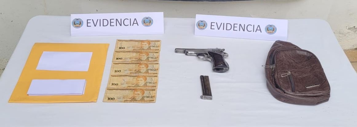 Al momento de su detención se les encontró en posesión de dinero en efectivo producto del cobro de extorsión, quienes exigía 20,000 mil lempiras a su víctima y un arma de fuego calibre 22 milímetros.