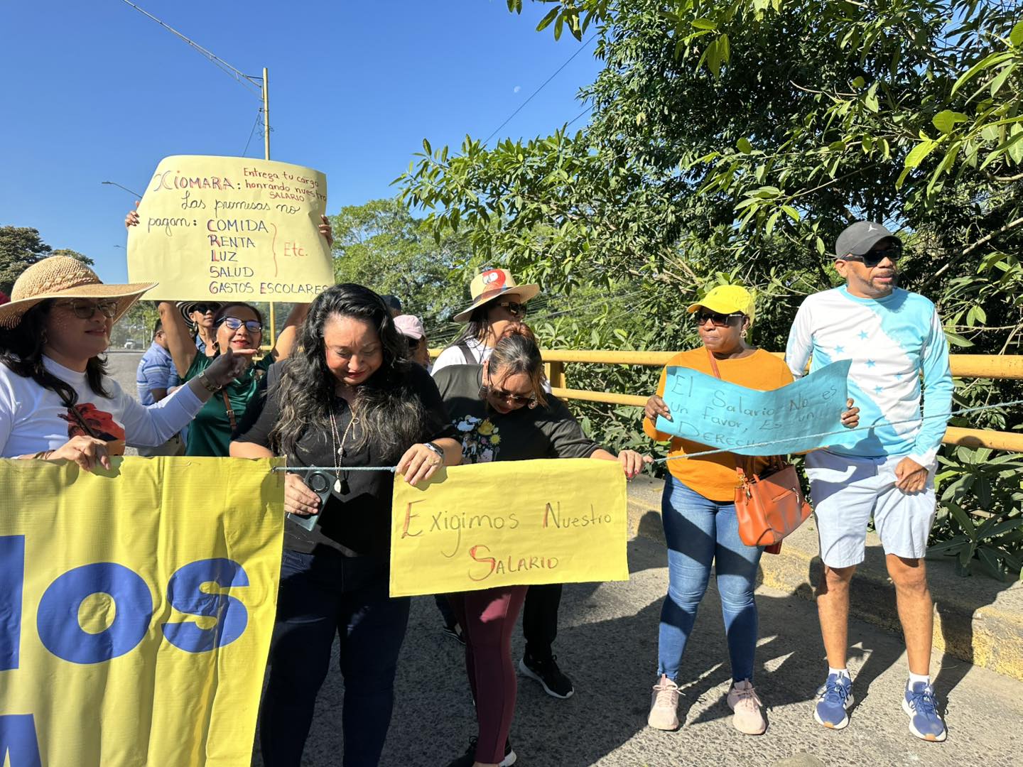 Este jueves, docentes de La Ceiba, Atlántida, realizaron un bloqueo total sobre el puente del río Danto para exigir el pago de sus salarios correspondientes al mes de diciembre y las vacaciones.