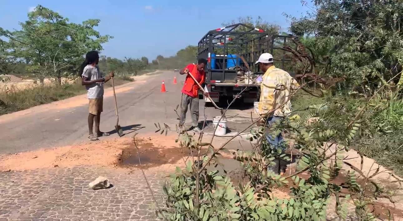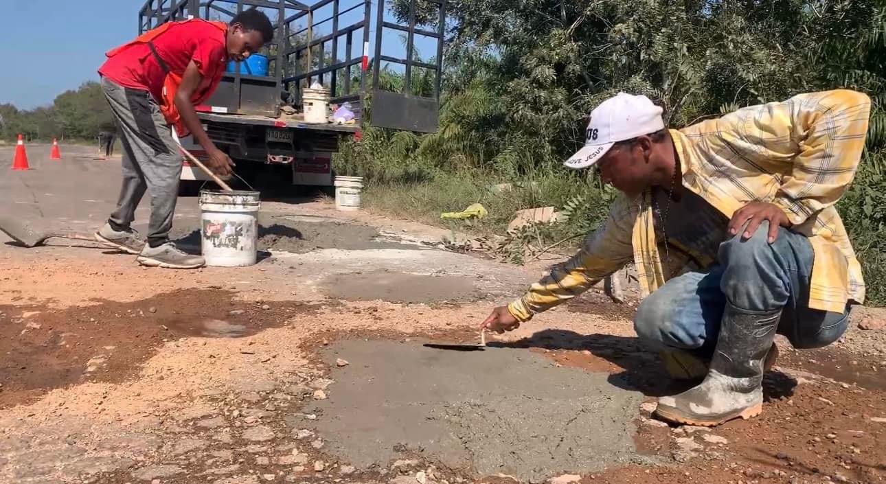 Puerto Castilla,Colón.- A pocos días para la Semana Santa y el bacheo del Gobierno no llegó ,los dueños de proyectos turísticos taparon los agujeros que hay en ese tramo carretero.