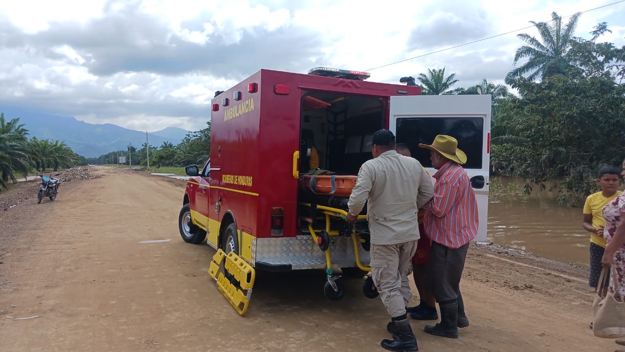 Tocoa,Colon – Aún bajo condiciones difíciles por el agua que todavía mantiene cortado el paso de vehículos en la margen izquierda se logró trasladar desde la Aldea Panamá ,una persona enferma hacia el hospital San Isidro .