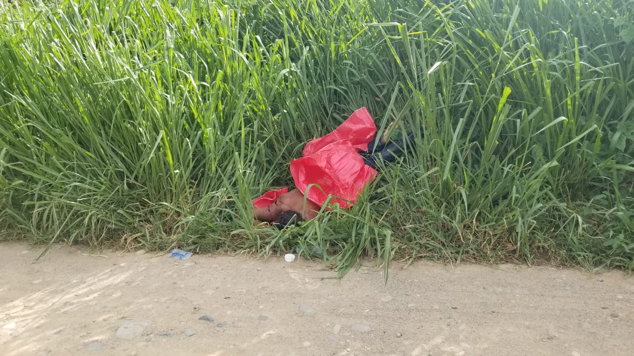 Aún no se ha identificado por parte de medicina forense ,la victima está descalzo y no hay rastro de sangre en la escena por lo que se supone lo vinieron a tirar en este lugar.