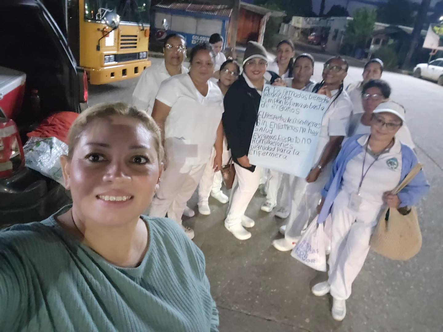 Las enfermeras del Hospital San Isidro de Tocoa, en compañía de sus colegas de Olanchito, se trasladaron hasta la ciudad de La Ceiba para unirse a la manifestación que llevan a cabo las profesionales de enfermería de esa zona atlántica.