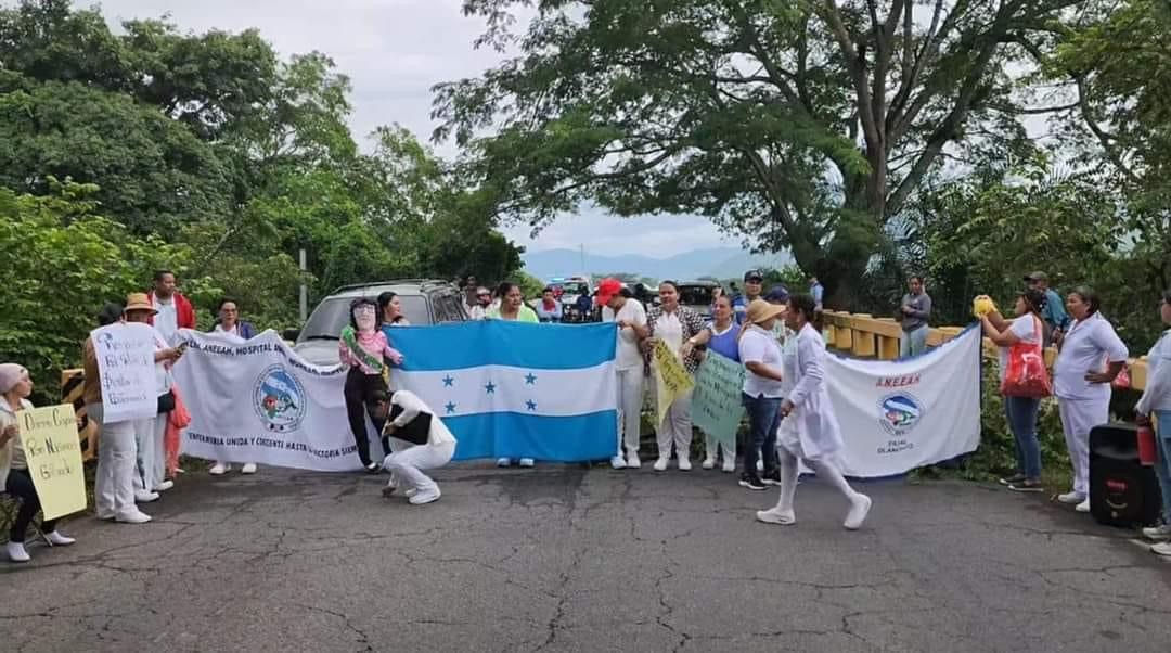 La protesta inició en horas tempranas de la mañana . Las enfermeras exigen varios puntos al gobierno entre ellos el pago de salarios atrasados a personal por contrato, el beneficio del zonaje y alto al acoso laboral de sufre personal en La Ceiba, San Pedro Sula y La Mosquitia.