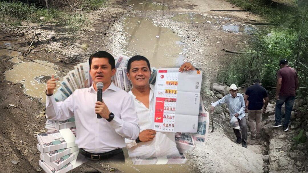 Dos de estos proyectos no se ejecutaron, y el tercero fue denunciado por los vecinos y autoridades municipales como una simulación de obra: simplemente se colocó tierra sobre un tramo vial evidentemente dañado, con baches y rocas, que debía ser rehabilitado de forma adecuada.