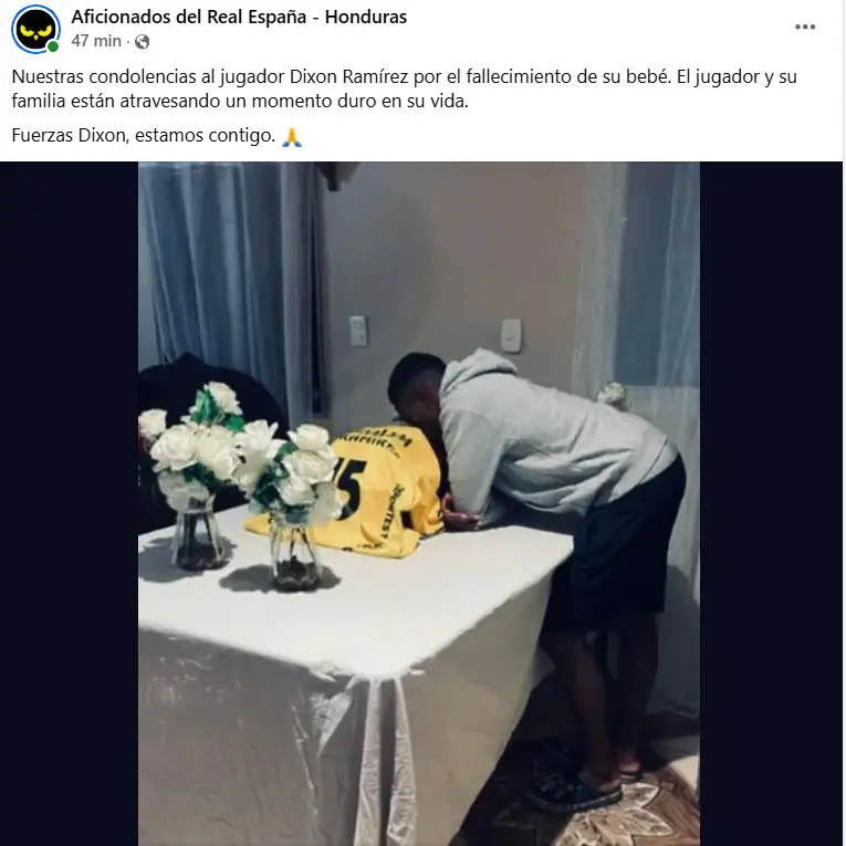 Este miércoles se confirmó la lamentable muerte del hijo del futbolista hondureño Dixon Ramírez, jugador del Real España y miembro de la Selección Nacional de Honduras.