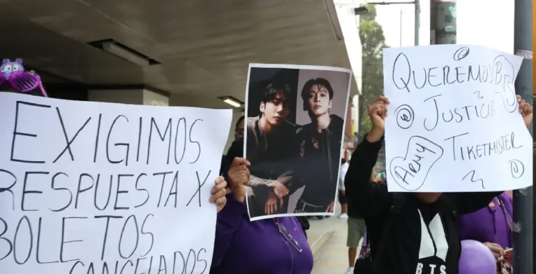 Decenas de seguidores del grupo de k-pop BTS se manifestaron en Ciudad de México para exigir claridad y transparencia tras lo que consideran “abusos” de Ticketmaster en la venta de entradas para los conciertos de la banda. Ataviados con banderas y cintas moradas, los fans marcharon hasta la Procuraduría Federal del Consumidor (Profeco) para solicitar que se investigue la falta de claridad y se haga justicia.