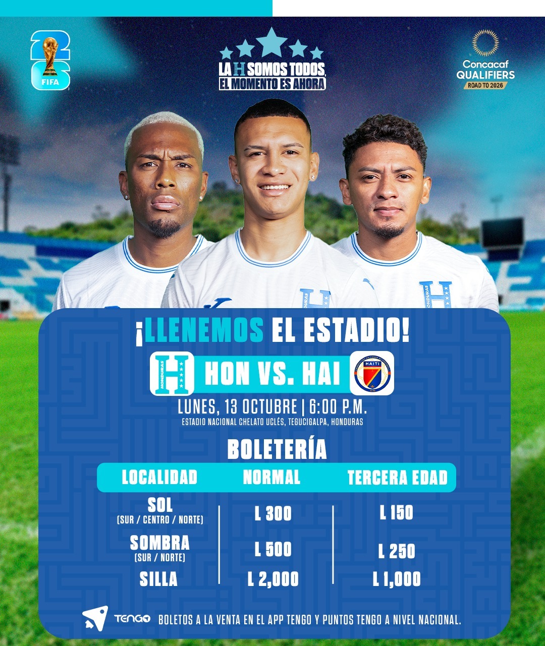 Finalmente afirmaron: «Honduras vrs. Haití, lunes, 13 de octubre, 6 p.m, Estadio Nacional Chelato Uclés, Tegucigalpa, Boletos a la venta en la app Tengo y Puntos Tengo a nivel nacional»