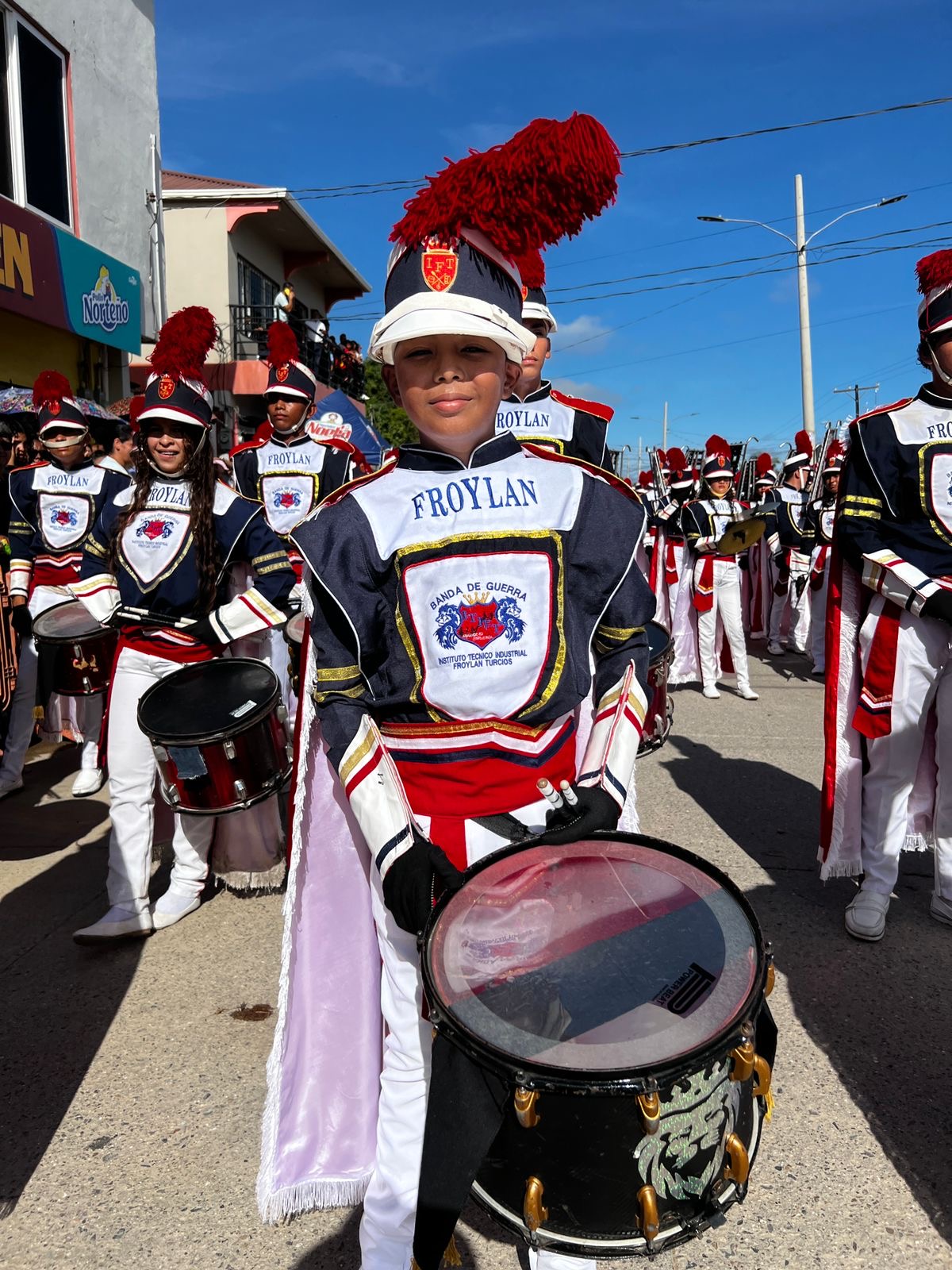La banda de guerra del Instituto Froylan Turcios se llevó los aplausos con su ritmo y colorido .