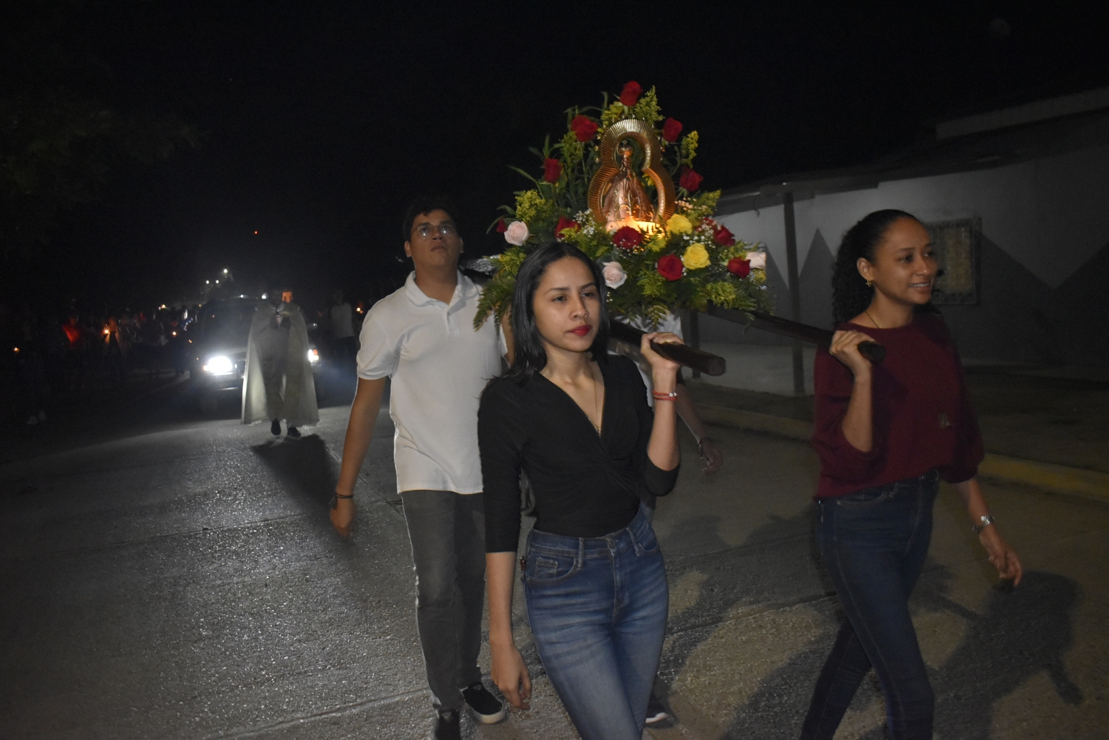 El padre Edwin López, párroco de esta iglesia dirigió la caminata, mientras gritaba vivas y recordaba pasajes de los envengelios que sitúan a María en el plan de Salvación de su Hijo.