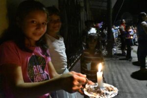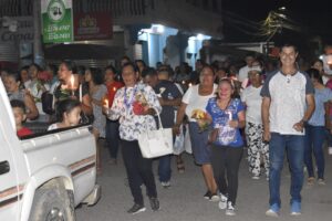 Portando coloridas velas y rosarios, muchos oraban con devoción cada momento de la procesión.