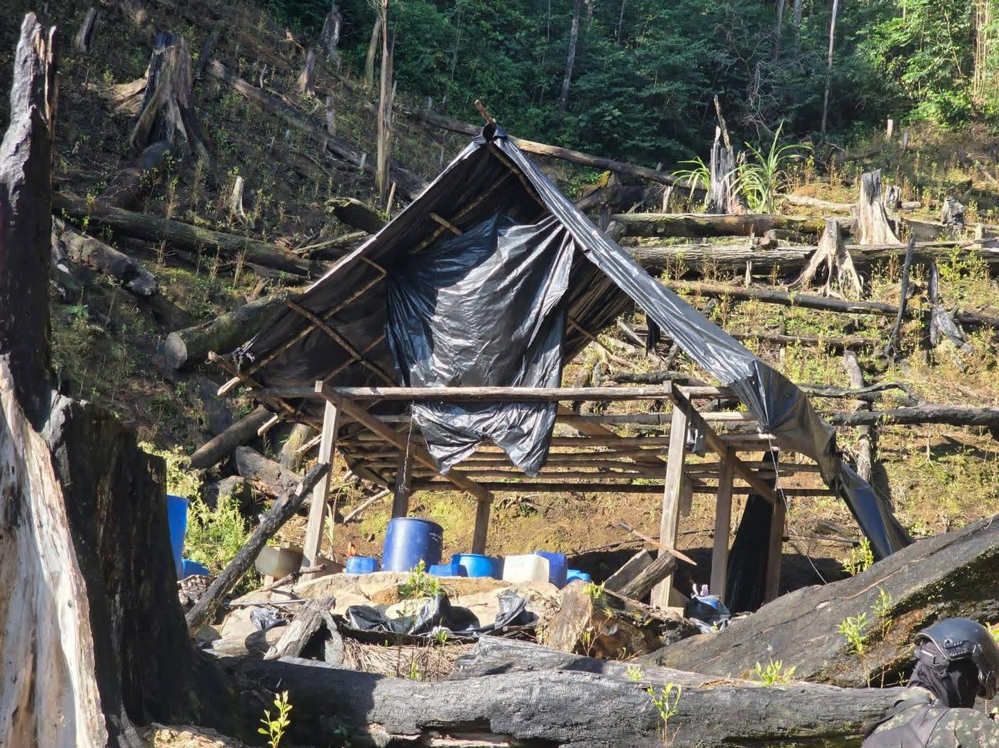 En el lugar también fue encontrada una estructura artesanal que presuntamente era utilizada para el procesamiento de la droga. Dentro de la misma se localizaron precursores químicos que servirían para la elaboración de derivados de la hoja de coca.
