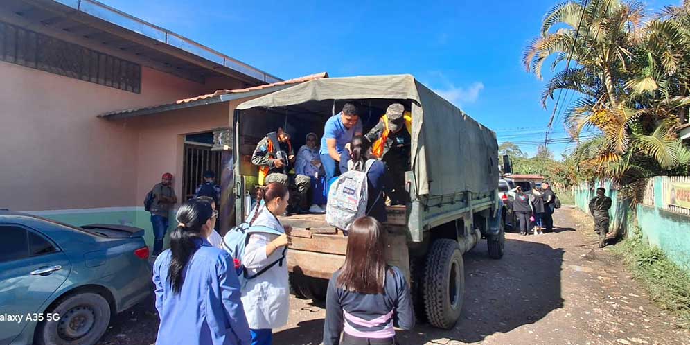 En el norte de la capital, elementos del Primer Batallón de Artillería colaboraron con la Secretaría de Salud para trasladar médicos, técnicos, voluntarios y medicamentos hacia la comunidad de Villa Unión, San Francisco de Soroguara, garantizando la atención a los pobladores afectados.