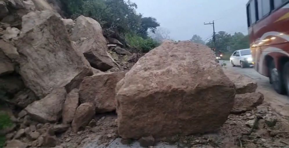 El colapso de enormes rocas en el kilómetro 3 de la carretera al sur mantiene paralizado el tráfico en una de las principales vías de Tegucigalpa. Las intensas lluvias de las últimas horas provocaron el deslizamiento, que ha dejado habilitado solo un carril y generado fuerte congestión.