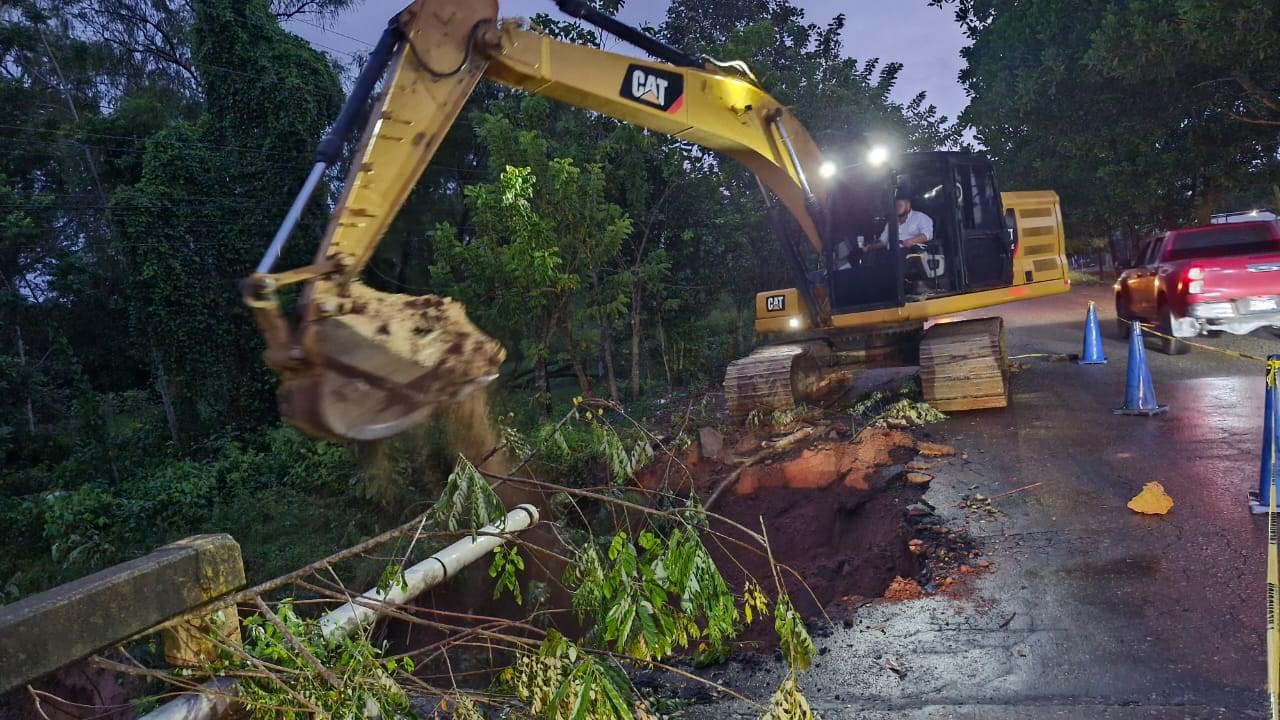 Quebrada de Arena – Debido a las fuertes lluvias se dañó el acceso al puente en este sector en la carretera de Tocoa a Trujillo , horas después llegó maquinaria de la Secretaría de Infraestructura y Transporte para reparar el agujero .