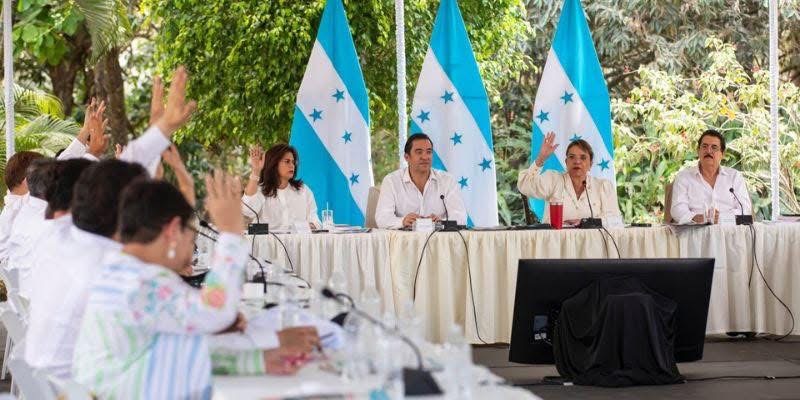 Olancho – El Consejo de Ministros se reunió la tarde de este domingo en Lepaguare, Olancho, para mostrar su respaldo a la candidata oficialista Rixi Moncada y al jefe de las Fuerzas Armadas, Roosevelt Hernández, así como la ratificación de subsidios de la actual gestión gubernamental y la ampliación de garantías constitucionales.