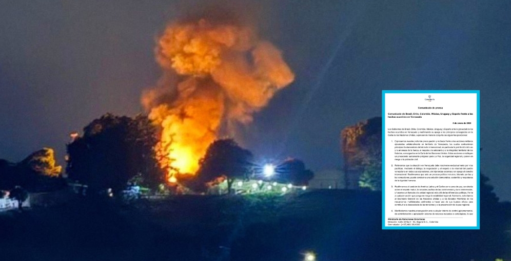 Brasil, Chile, Colombia, España, México y Uruguay rechazaron las acciones militares ejecutadas unilateralmente en Venezuela, que llevaron a la detención del presidente Nicolás Maduro y su esposa Cilia Flores. En un comunicado conjunto, los países manifestaron su preocupación por la violación de principios fundamentales del derecho internacional, como la prohibición del uso de la fuerza, el respeto a la soberanía y la integridad territorial.