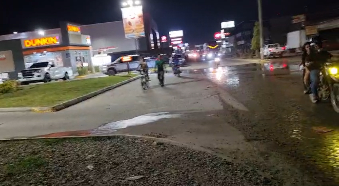 Las aguas salen de una caja ubicada en el predio de los restaurantes de comidas rápidas ,le hacen un llamado a la Unidad Municipal del Ambiente para que le busque una solución a este problema ambiental.