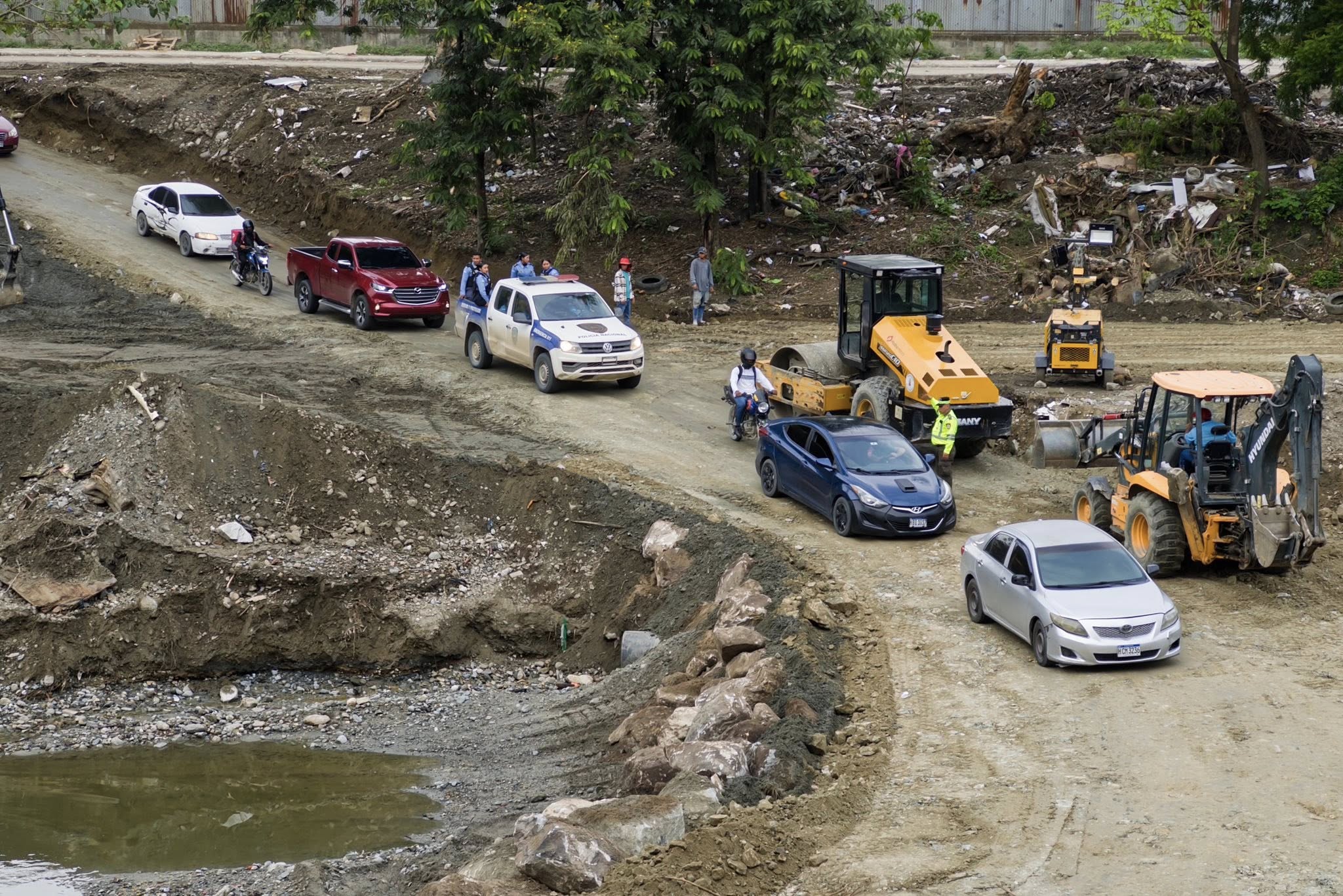 Habilitan paso provisional en zona del puente colapsado en San Pedro Sula
