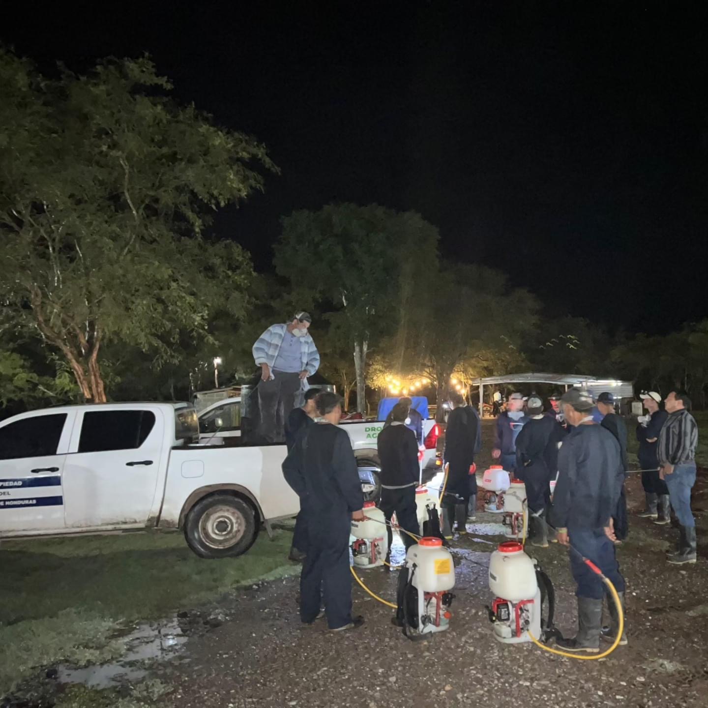 En un esfuerzo para controlar la plaga , se suman los productores y ganaderos de la zona, con el apoyo del Organismo Internacional de Sanidad Agropecuaria (OIRSA), la empresa Standard Fruit Company, Bayer y personal del Instituto de Conservación Forestal (ICF).